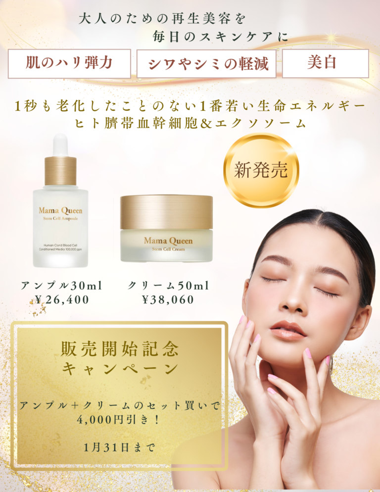 本製品は、ヒト臍帯血幹細胞およびエクソソームを主成分とし、30代からの肌悩みに多角的にアプローチします。